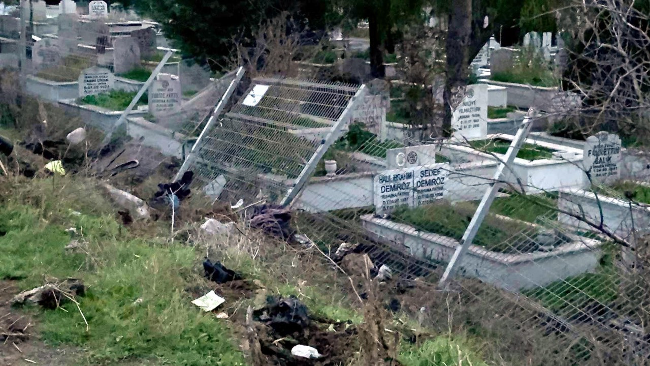 İddiaya göre; İ. T., kullandığı otomobilin hakimiyetini kaybedip, tel örgüleri aşarak mezarlığa girdi.