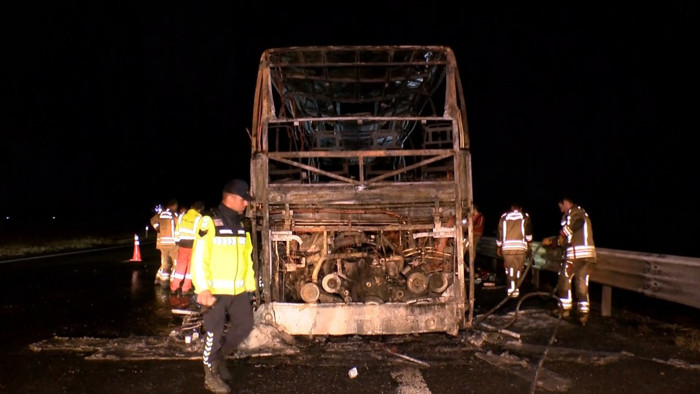 Yangını fark eden otobüs şoförünün, aracı emniyet şeridine park etmesinin ardından sürücü ve muavinin müdahalesi ile 36 yolcunun tahliyesi sağlandı.