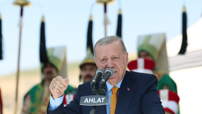 Cumhurbaşkanı Erdoğan, Malazgirt Zaferi'nin 954’üncü yılı kutlama törenleri kapsamında MHP Genel Başkanı Devlet Bahçeli ile birlikte Bitlis'in Ahlat ilçesinde düzenlenen törene katıldı.