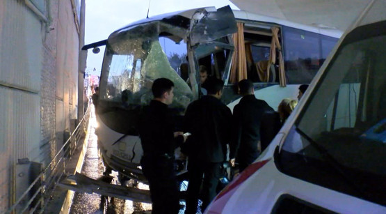 Çevik kuvvet otobüsü üst geçide çarptı; araçta sıkışan polisi itfaiye kurtardı