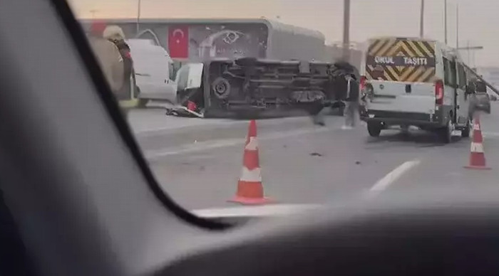 Beylikdüzü'nde servis aracı devrildi: 13 yaralı