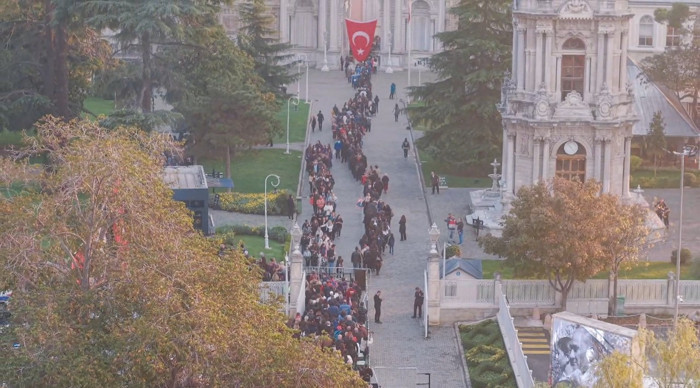 Dolmabahçe'de oluşan yoğunluk havadan görüntülendi