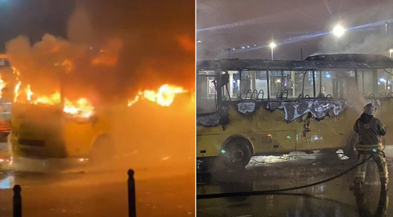 Minibüs sabah saatlerinde alev alev yandı! Fatih'te korkutan anlar!