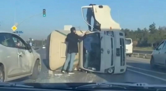 Bursa'nın Kestel ilçesinde refüje çarpıp, takla atan kamyonetin sürücüsü Murat Şenyer (36) ile yanındaki Mevlüt Kılıç (33) hayatını kaybetti.