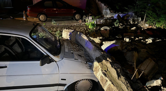 Kayseri'de bahçe duvarı çöktü; 3 otomobilde hasar oluştu