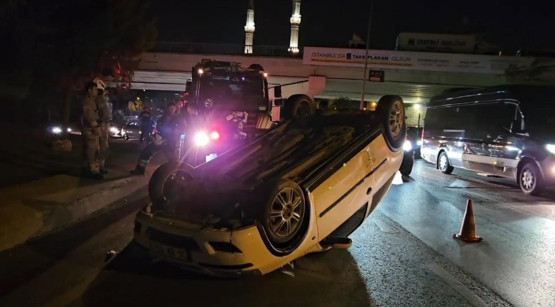 Şişli'de kaldırıma çıkan otomobil takla attı; sürücü yara almadan kurtuldu