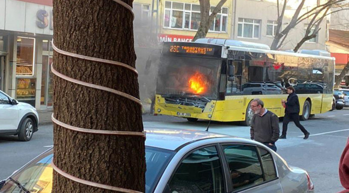 Kireçburnu'nda seyir halindeki İETT otobüsünde yangın çıktı