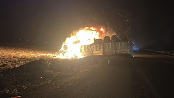 Mardin'in Nusaybin ilçesinde şoförünün kontrolünden çıkarak devrilen TIR, alev aldı. TIR’da mahsur kalan şoför M. Ç. (50), yanarak hayatını kaybetti.
