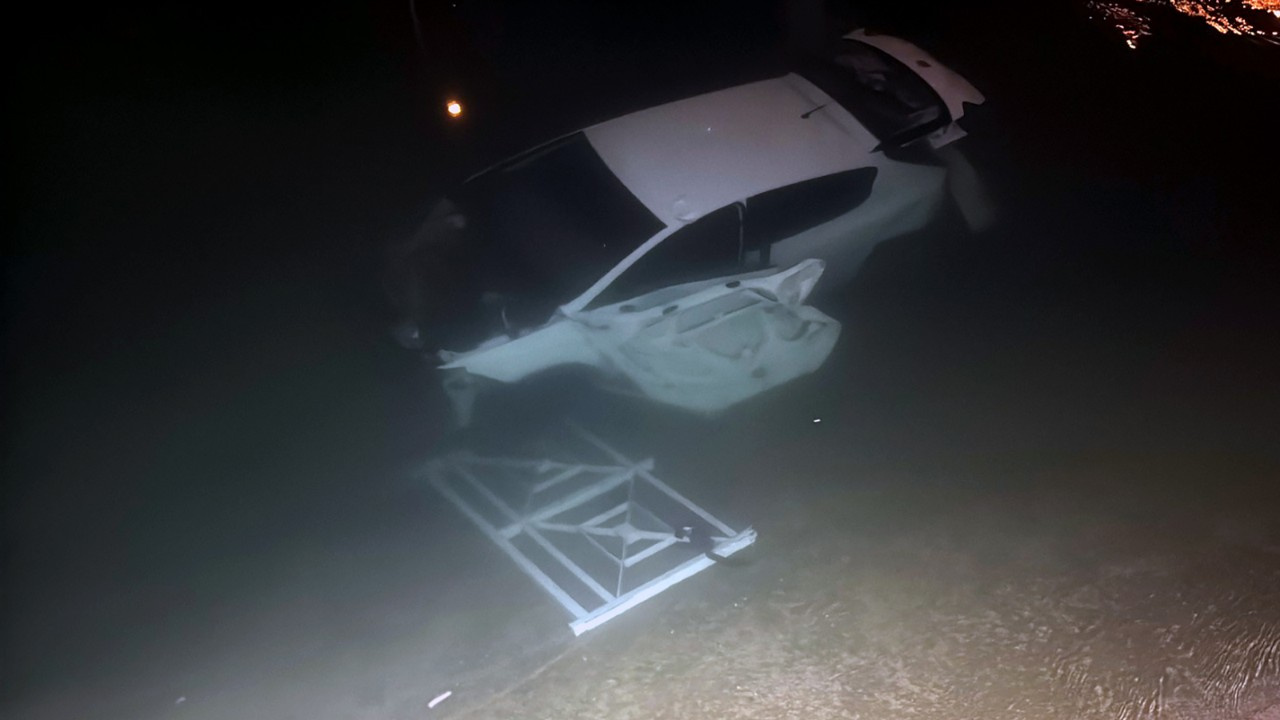 Çevredekilerin müdahalesiyle araçtaki 3 kişi sudan çıkarıldı.