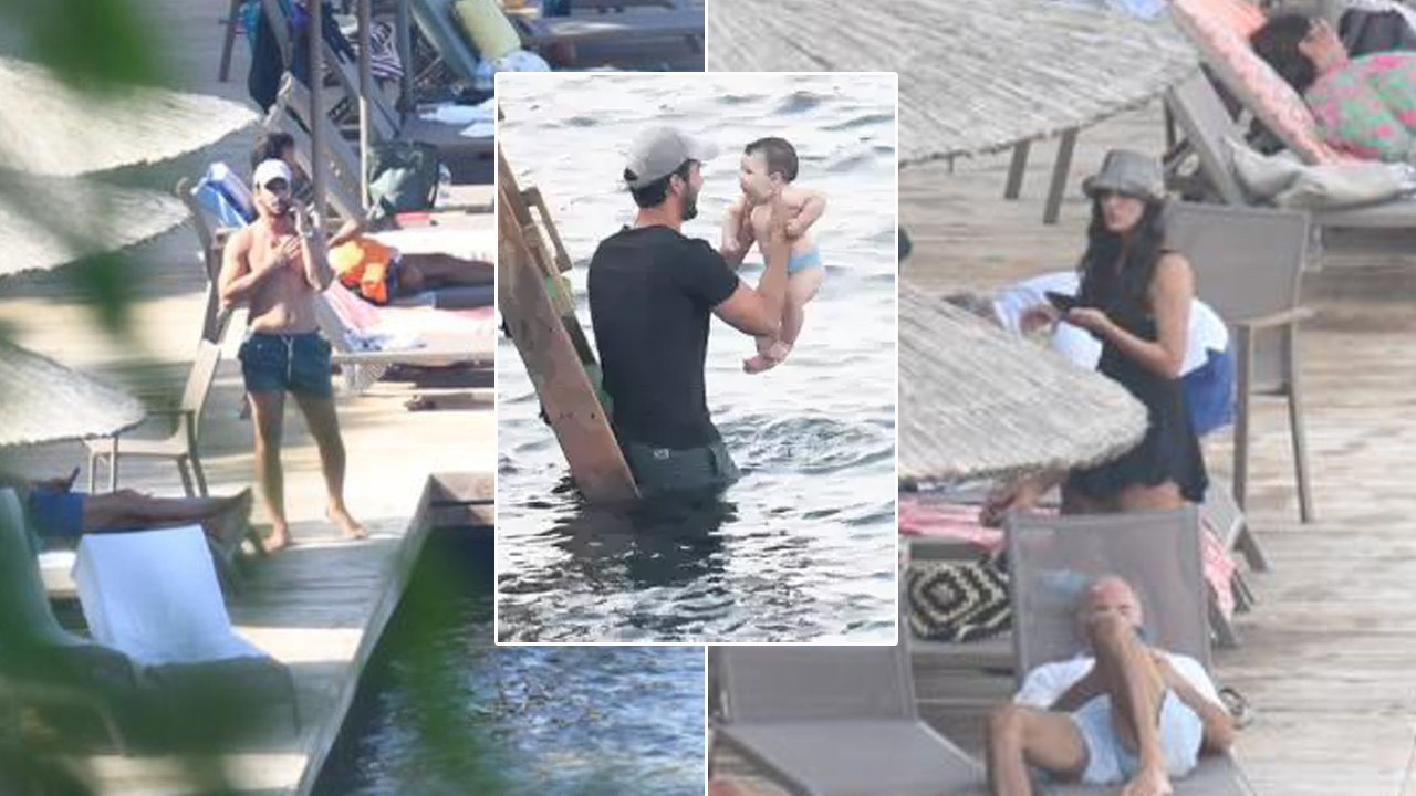 Yakışıklı oyuncu Kaan Yıldırım oğlu ile denize girdi. Pınar Deniz ise iskelede havlu ile bekledi.
