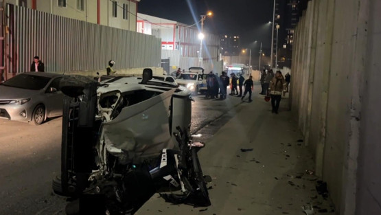 A.C. yönetimindeki hafif ticari araç, önce yol kenarında park halindeki bir araca çarptı, ardından seyir halindeki E.P.’nin kullandığı motosikletin üzerine devrildi. Kazada 2 kişi yaralandı.