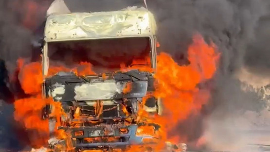 İhbar üzerine bölgeye sevk edilen itfaiye ekibi, TIR'dan yükselen alevleri kontrol altına aldı.