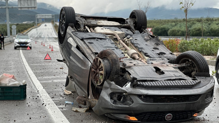 Sürücüsünün direksiyon hakimiyetini kaybettiği otomobil, refüje çarpıp takla atarak yaklaşık 100 metre sürüklendi. Sürücü V. Y. ile araçta bulunan eşi S.Y. (52) ve çiftin çocukları A.Y. (29), kazadan hafif sıyrıklarla kurtuldu.